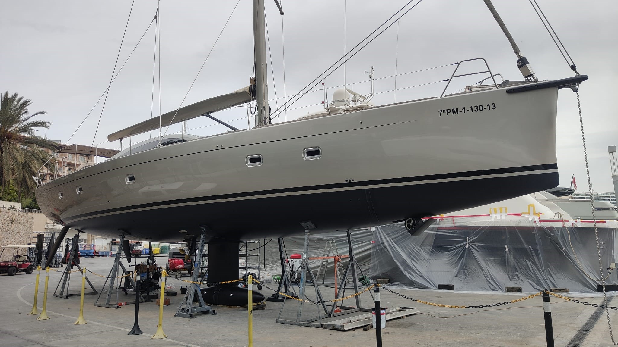 The yacht's structural integrity has been meticulously ensured through full NDT testing by QI, covering the hull, deck, keel, mast, boom, rudders, and all components of the canting keel system, including bearings, axles, and cylinders.
